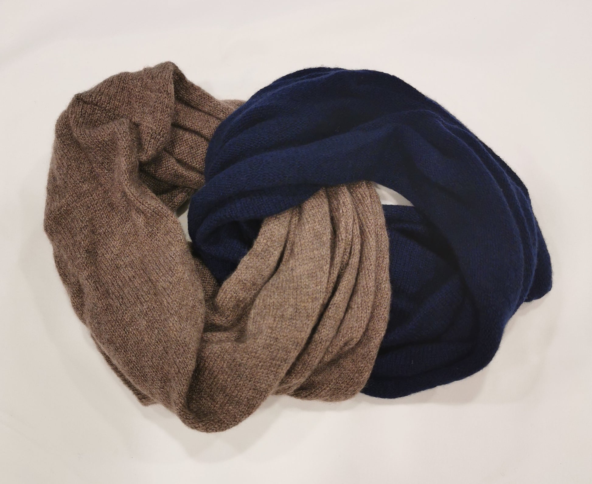 - Collo a due anelli di 2 colori, lavorato a maglia rasata, peso medio-pesante
